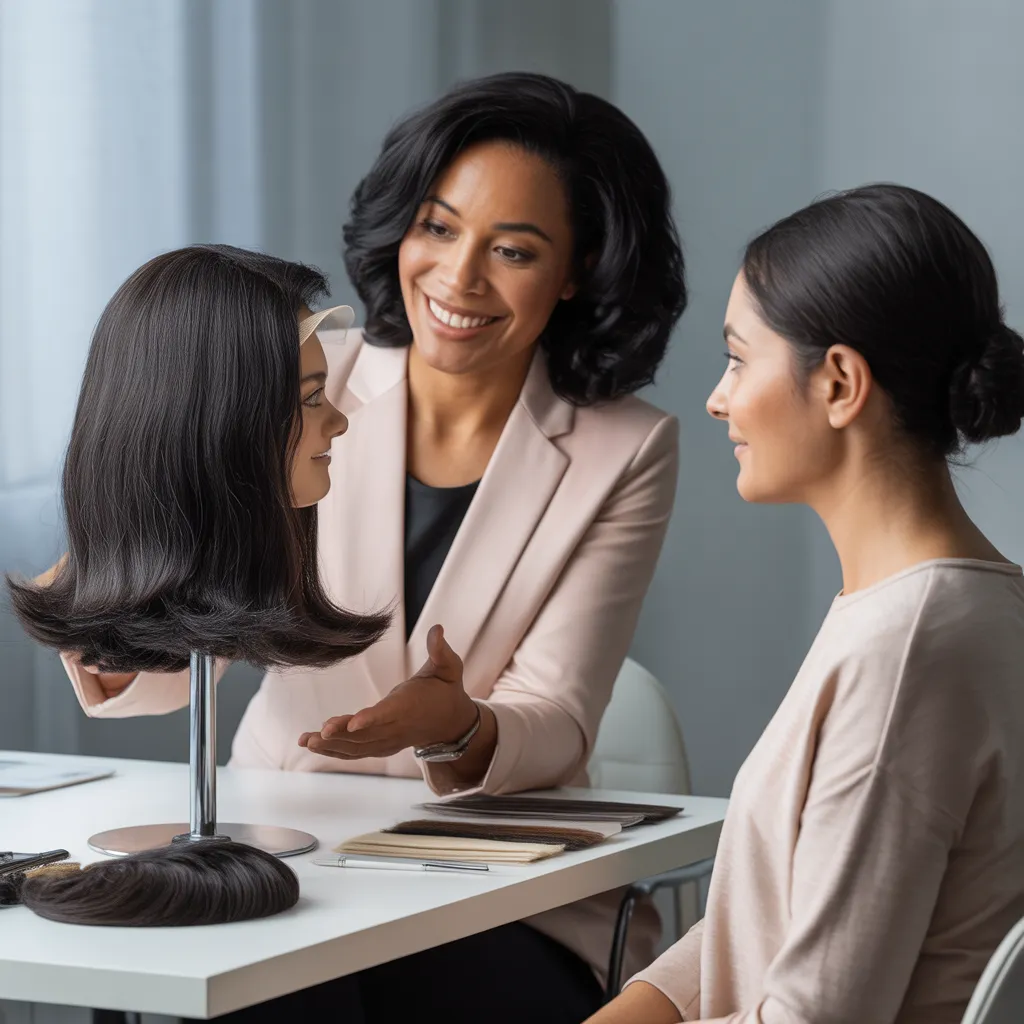 We specialize in designing medical-grade, glue-free cranial prosthetics with precise sizing and education for women facing hair loss globally.